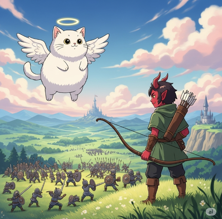 [이미지 제안: 위엄 있는 모습의 궁수 형상 그림]